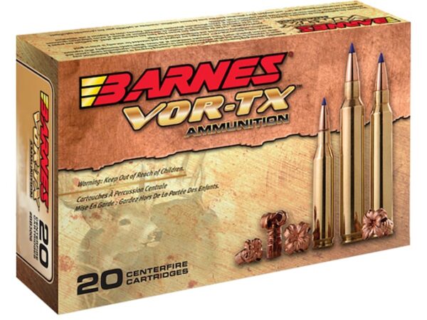Loaded with the Barnes Triple-Shock X (TSX) Bullet, this round offers devastating results on varmints. The Barnes TSX bullet is made of 100% copper and contains no lead. When the bullet expands, four razor-sharp cutting petals are created, allowing the bullet to penetrate farther through tough bone and tissue. These bullets usually retain 100% of their original weight. The Triple-Shock X bullet delivers the “three strikes you’re out” rule. Once as it strikes game, two as the bullet begins to open and a third impact when the cavity fully expands to deliver extra shock with maximum transferred energy. Ideal for deer-sized game.